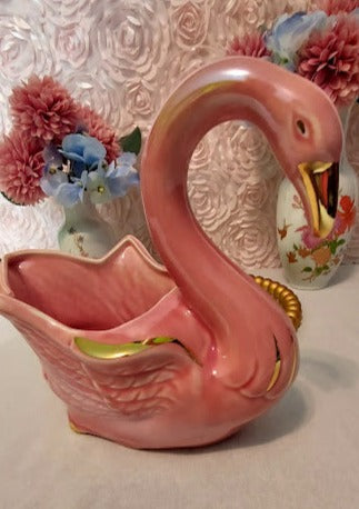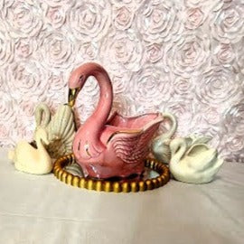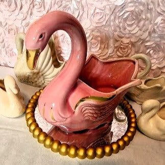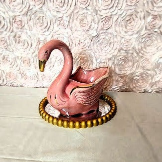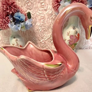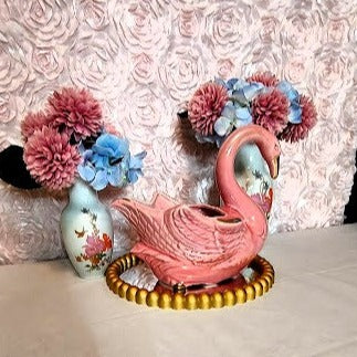 Adorn your home with the classic elegance of the Stanford Sebring Pink Swan. Crafted in the 1960's, this beautiful piece features a delightful pink hue with hint of gold highlights. Measuring 10 inches long, 6 inches wide and 8 1/2 inches tall, this swan is in excellent condition and brings a timeless air of sophistication to your decor!