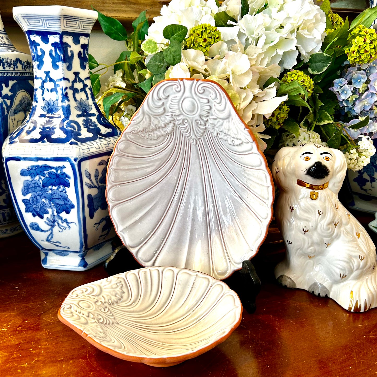 - Set of two designer terra cotta clam shell bowls by Loneoak & Co.