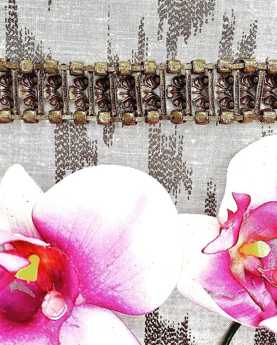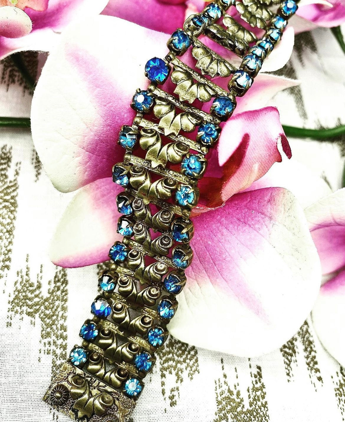 Stunning Antique 1920’s Art Nouveau Box Link London Blue/Brass Bracelet