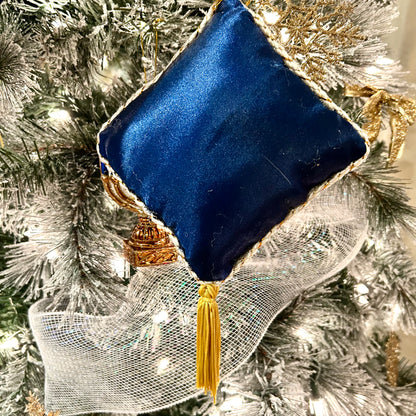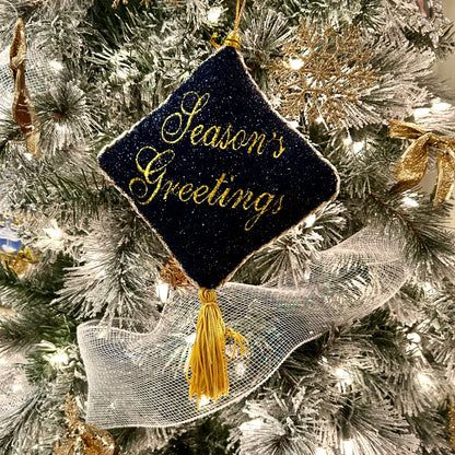 Sparkling blue & gold Seasons greetings tassel door hanger, or ornament