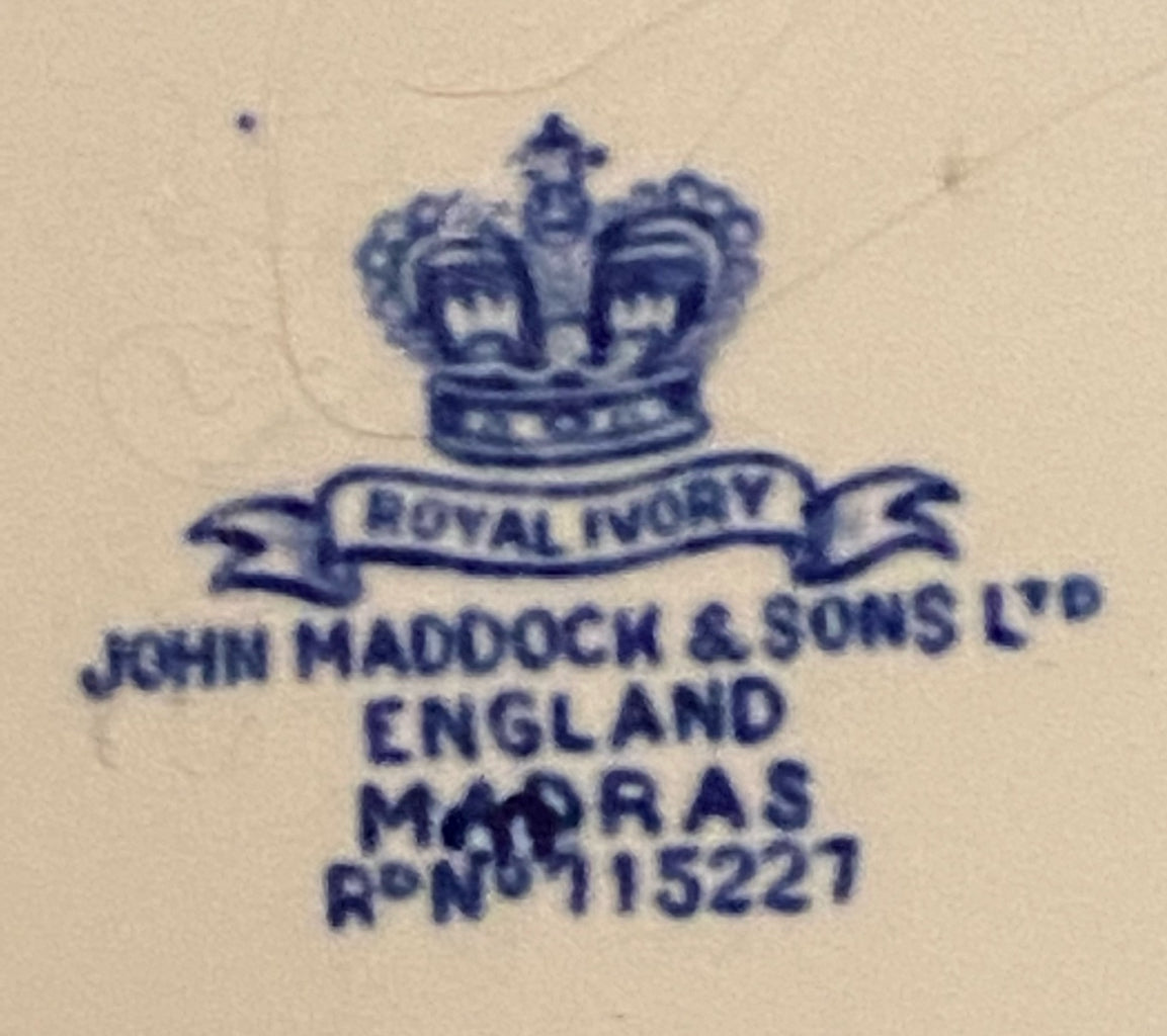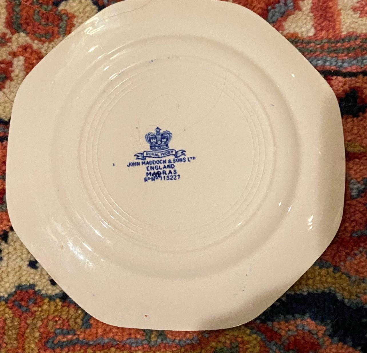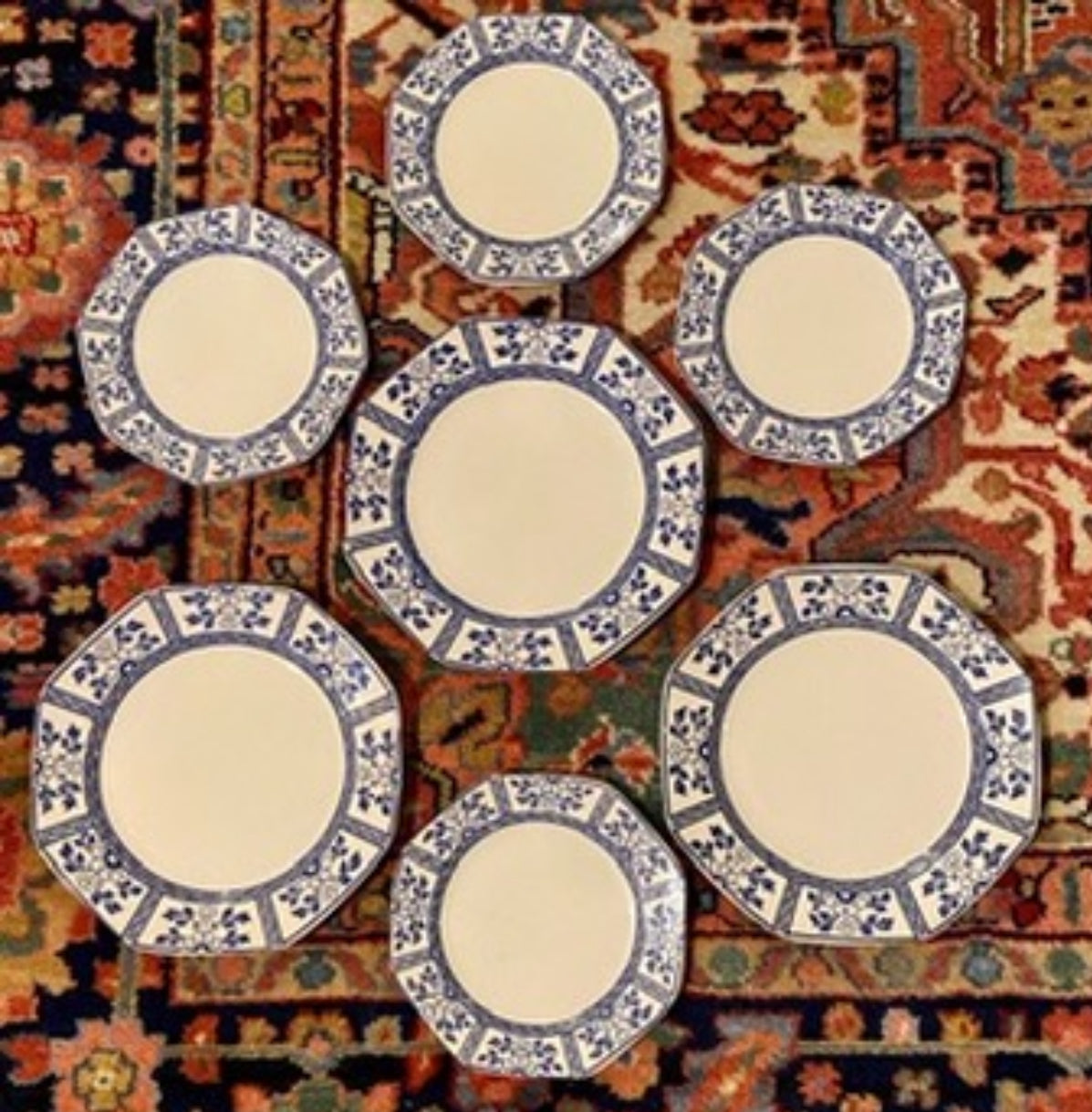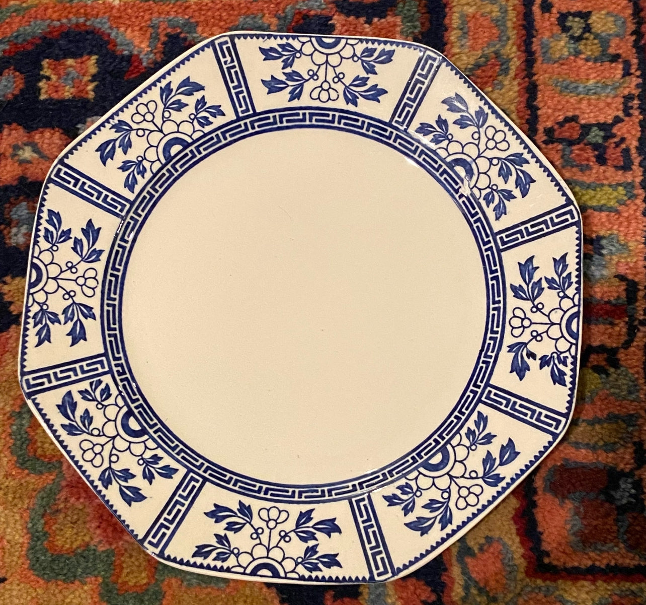 - Set of 7 John Haddock blue and white Greek key older dinner and salad plates