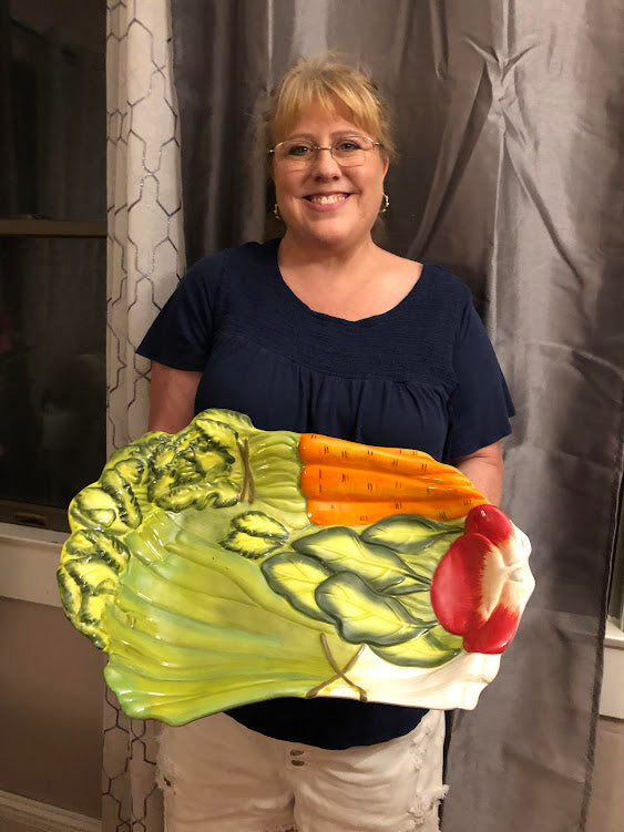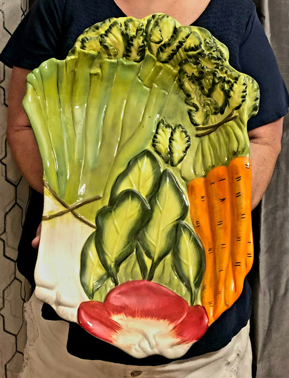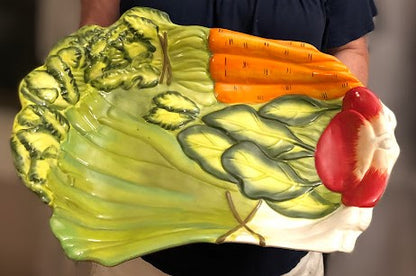 Bring your culinary creations to life with the Certified International Judy Phipps embossed veggie platter. Ideal for entertaining, this beautiful, large platter will elevate the presentation of your favorite vegetables – making them the star of the show! In excellent condition. Measurements are 19" long by 13" wide and approx. 2 1/2" deep.