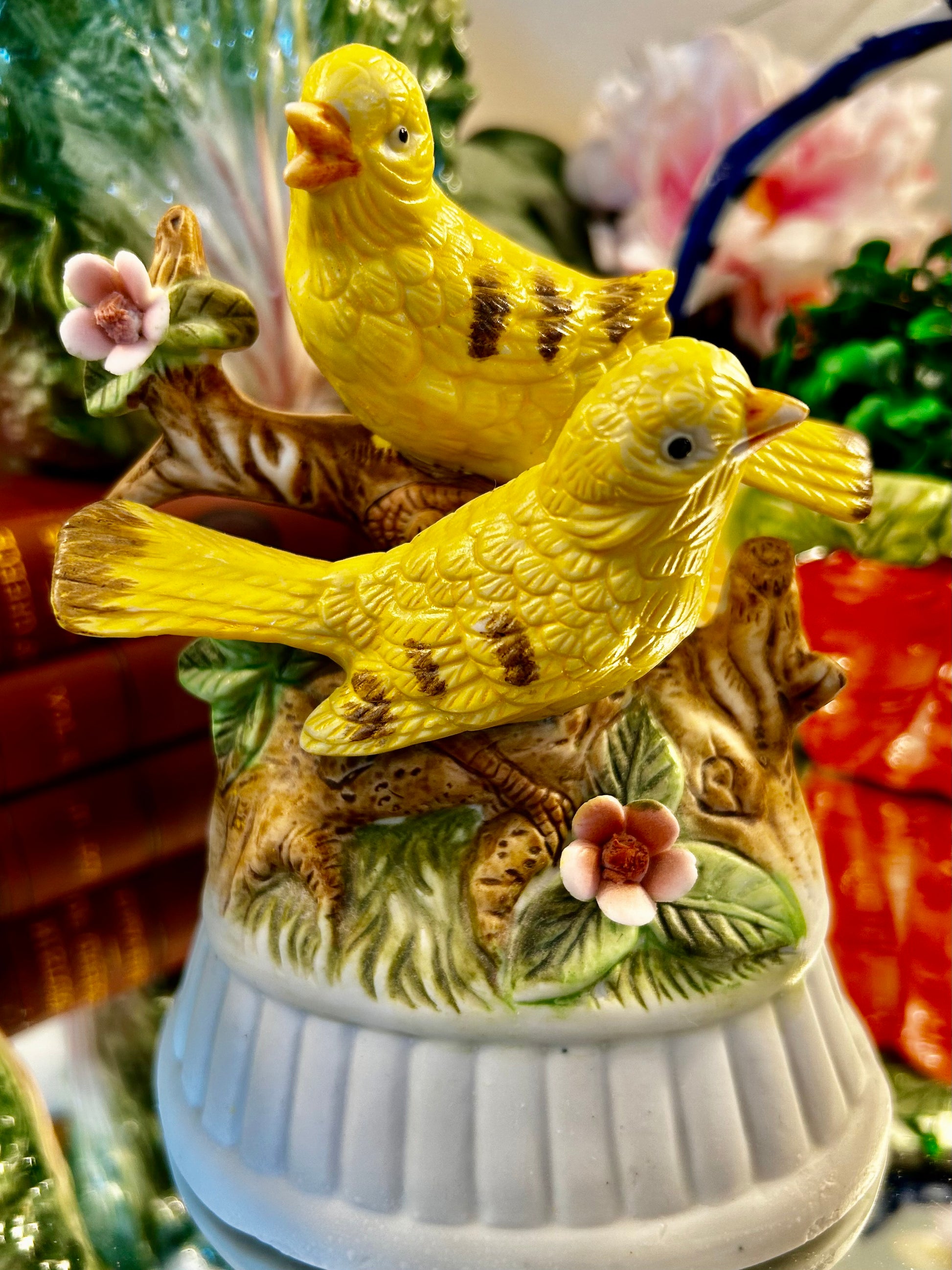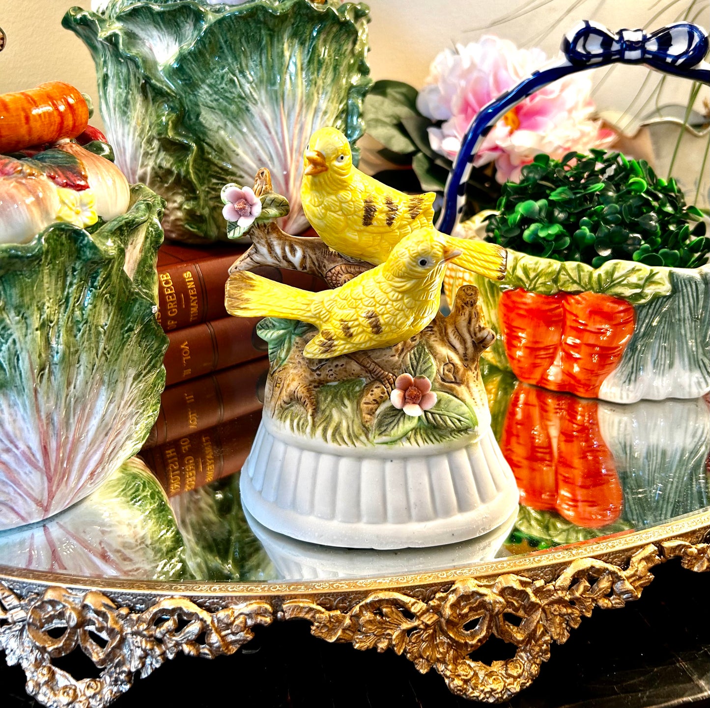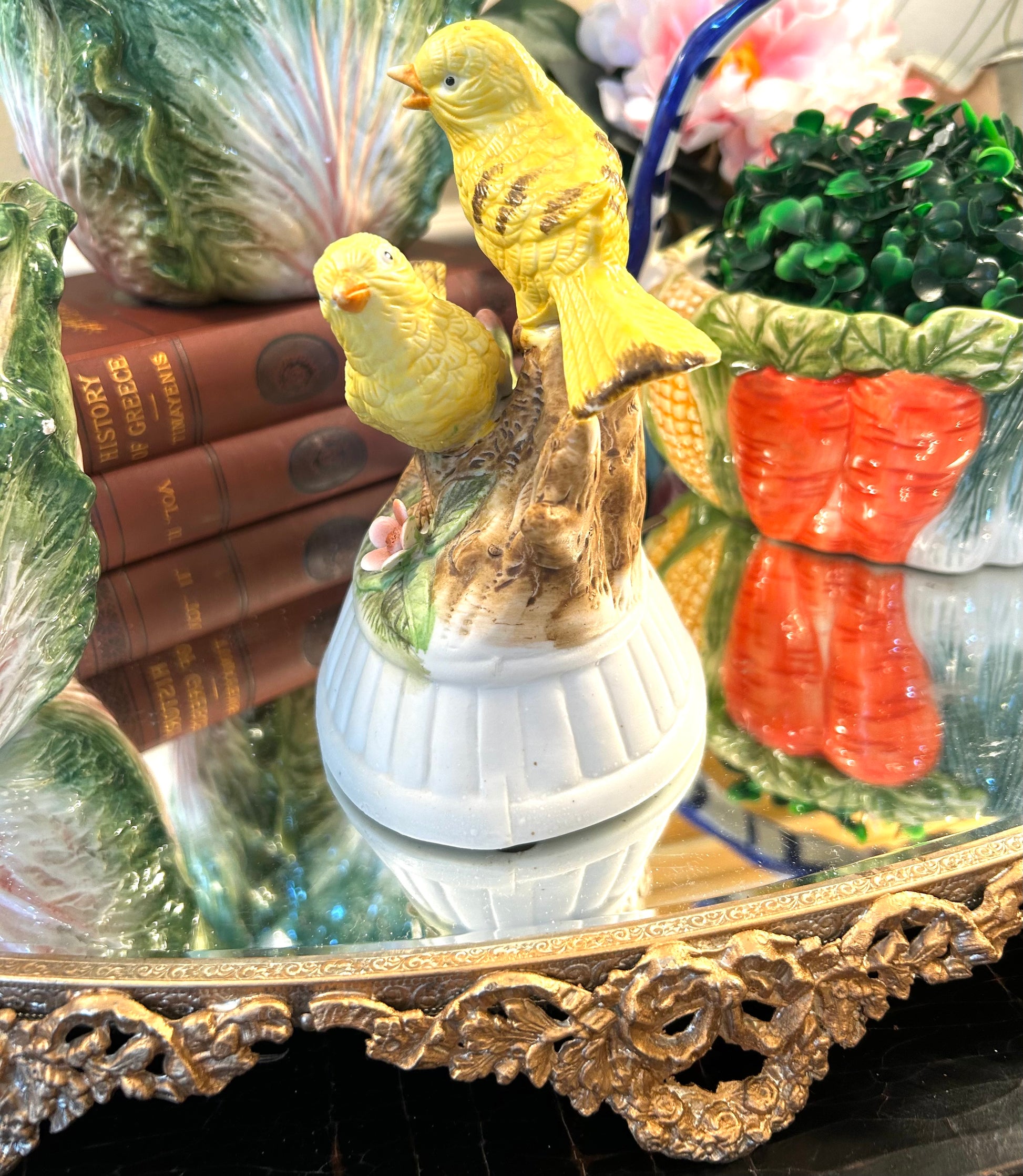 • Vintage designer Bird & botanical Audubon  music box figurine.
