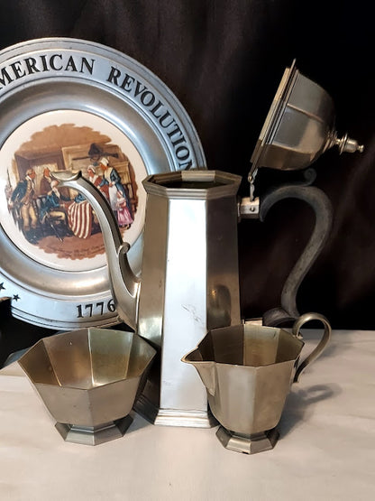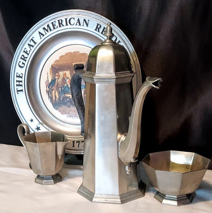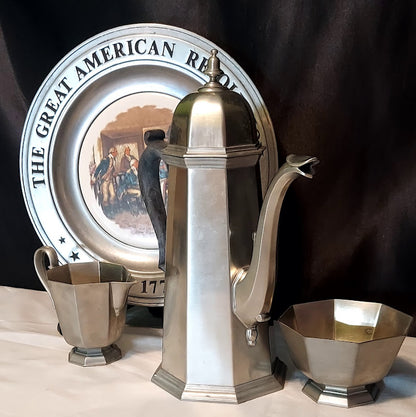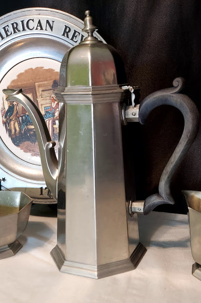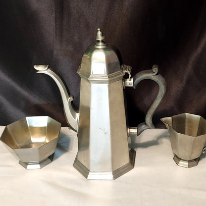 Vintage Gorham Pewter Coffee Pot with matching Creamer and Sugar