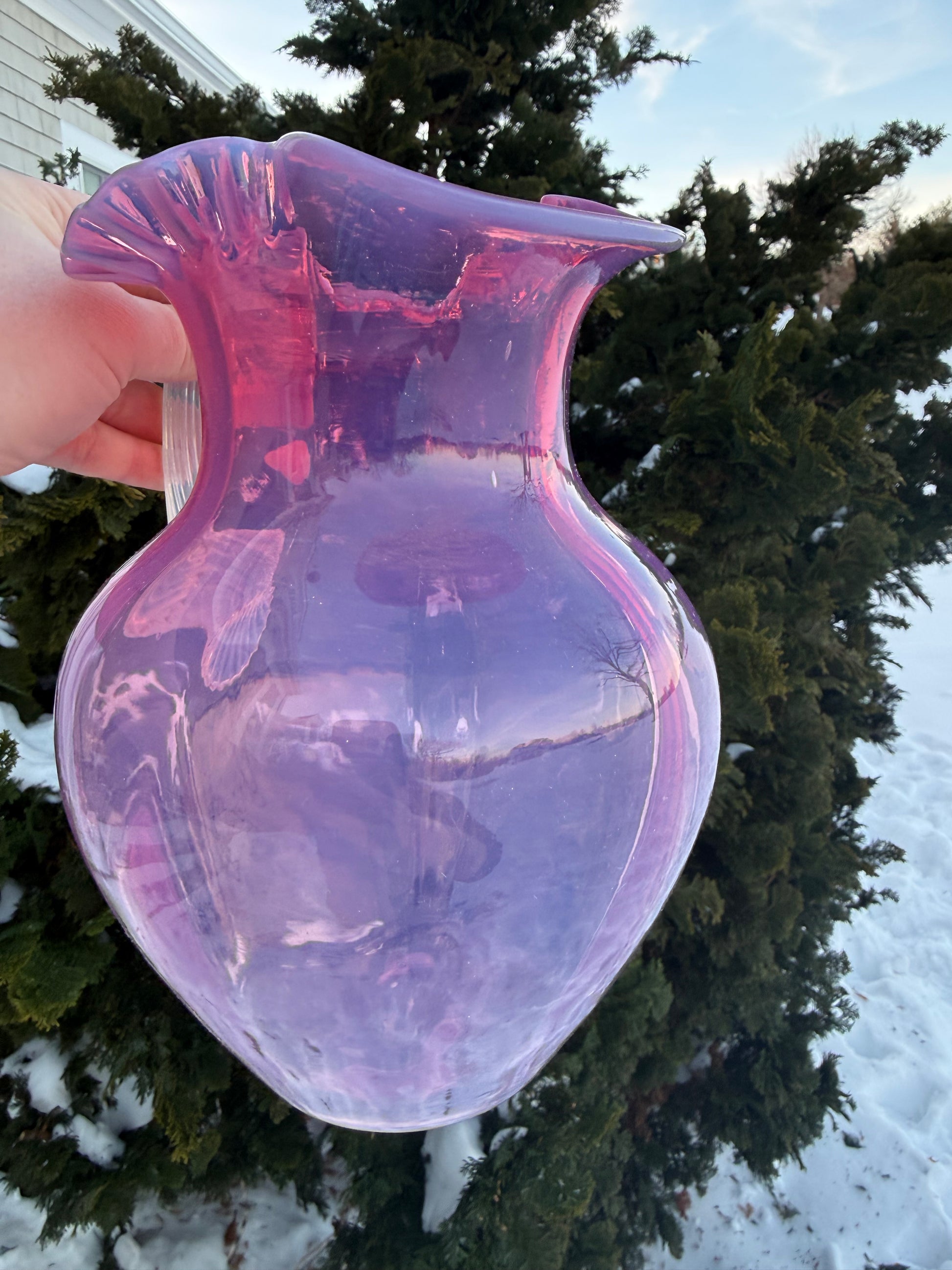 Vintage Pink Blown Glass Large Pitcher