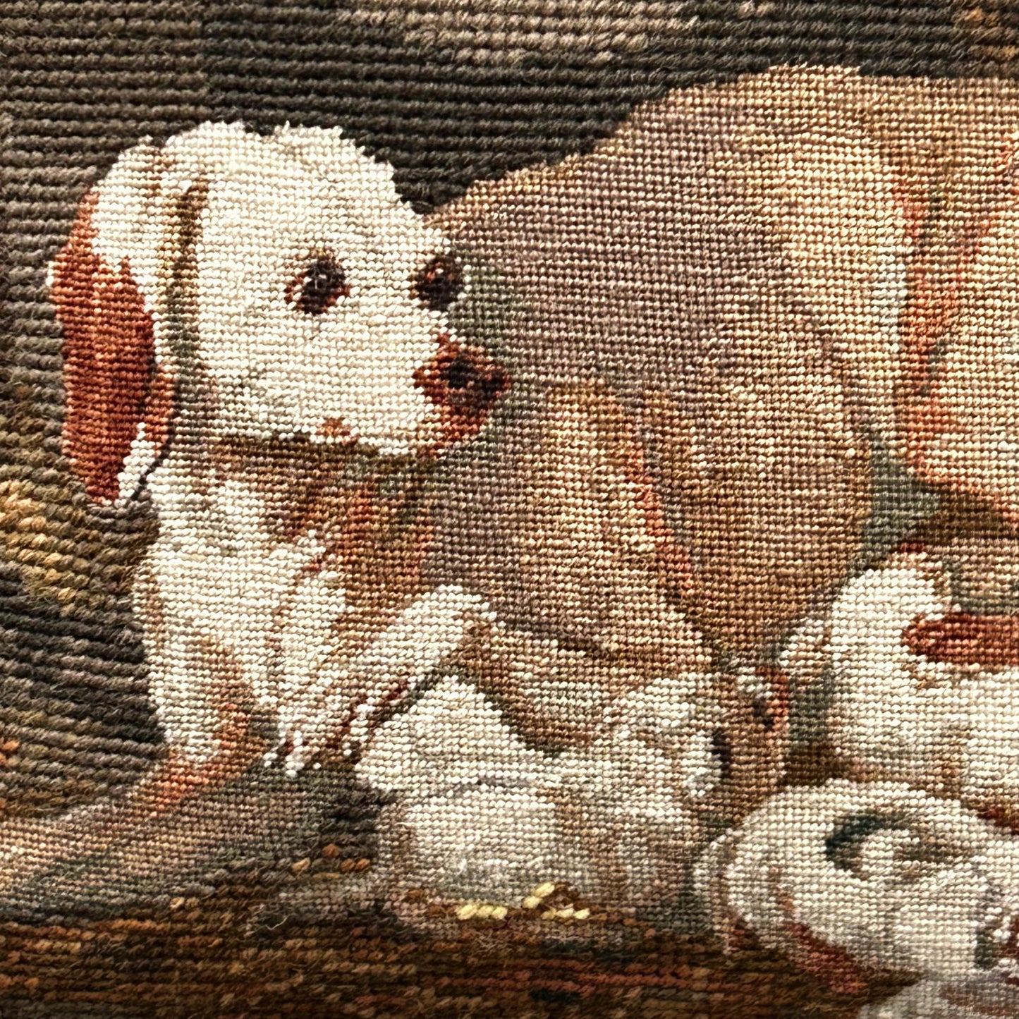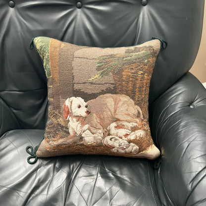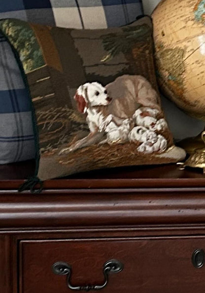 • Vintage rustic chic dog & puppies Needlepoint Pillow