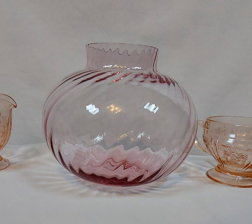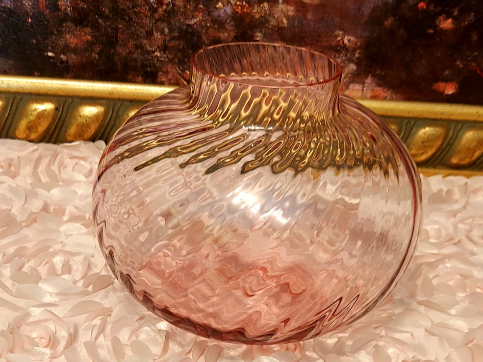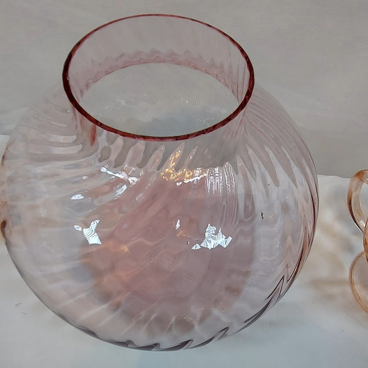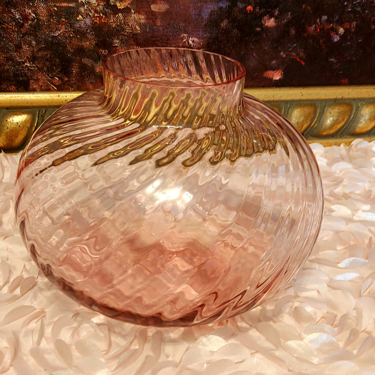 This exquisite Vintage Swirl Lavender Vase adds elegance to any space. The round swirl body and beautiful glass create a timeless piece. In excellent condition, this vase is sure to impress. Elevate your decor with this vintage gem. Measures 6 1/2" tall, mouth is 3" across and the body of it is 7" wide.